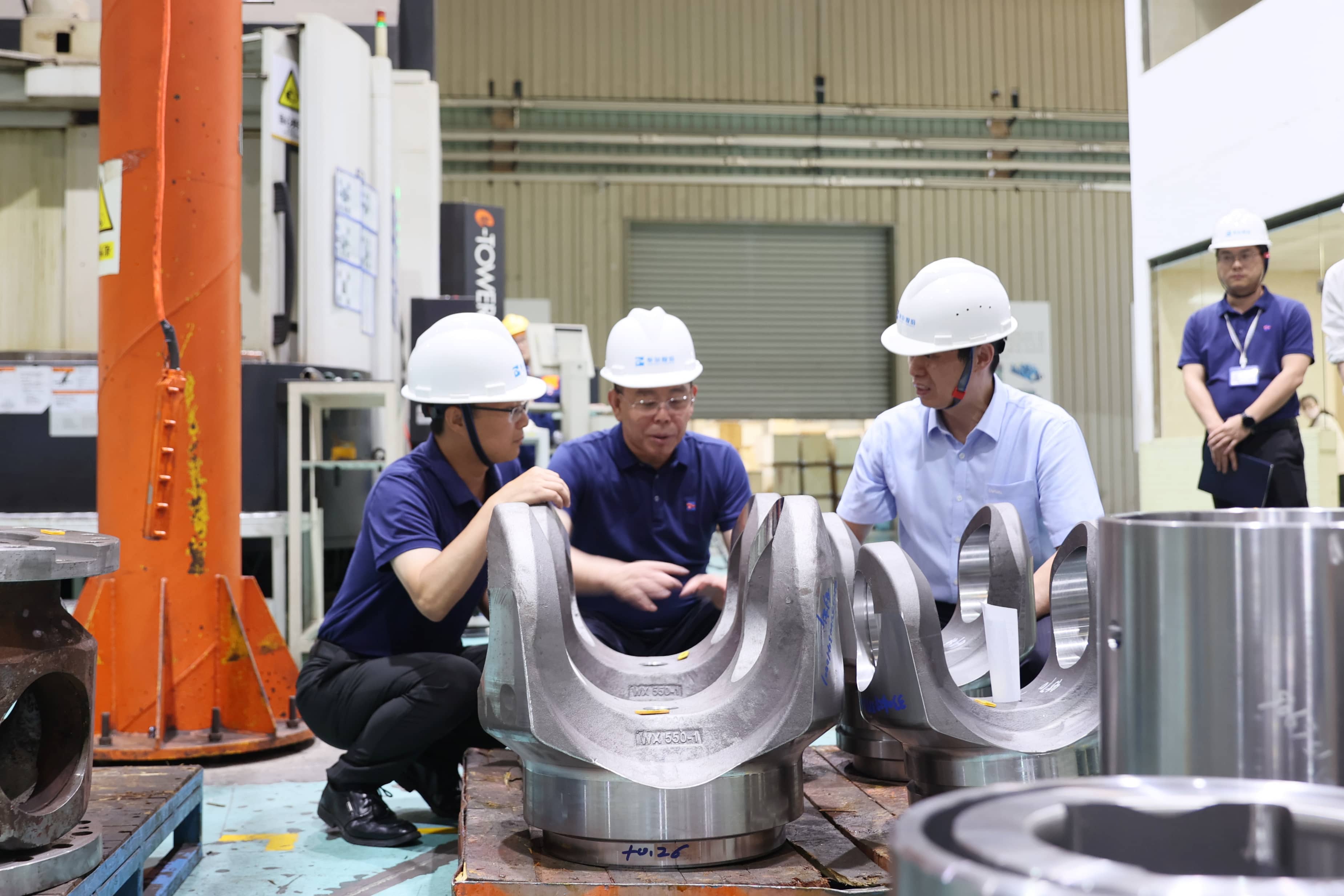 ? ? ? 在新區車間,歐(ou)冶工(gong)業品(pin)黨委書記、董事長張青(qing)詳細了(le)解了(le)萬向軸(zhou)的(de)叉頭零件加工(gong)工(gong)藝和企業的(de)質量(liang)控制(zhi),查看了(le)高精端機(ji)床設備,并對泰爾的(de)產品(pin)加工(gong)工(gong)藝和智能(neng)制(zhi)造裝備前景給予肯定。