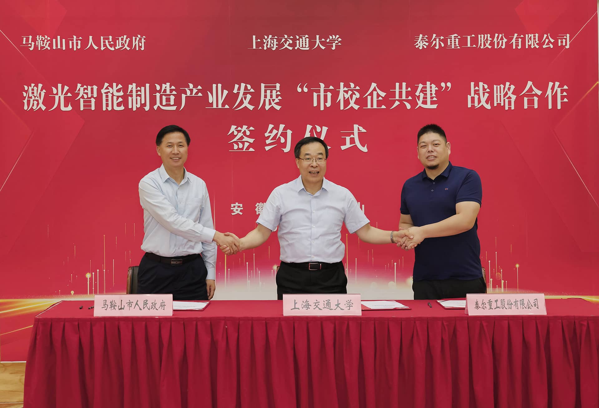 ? ? 2024年7月30日,泰爾重工與馬鞍山市人民政(zheng)府、上海交通大學在馬鞍山市會(hui)議中心(xin)第(di)一會(hui)議廳簽署(shu)了《激光智能(neng)制造產(chan)業發展“市企(qi)校(xiao)共建”戰略合(he)作協議》,三方擬在激光智能(neng)制造產(chan)業領域(yu)進行全面戰略合(he)作。