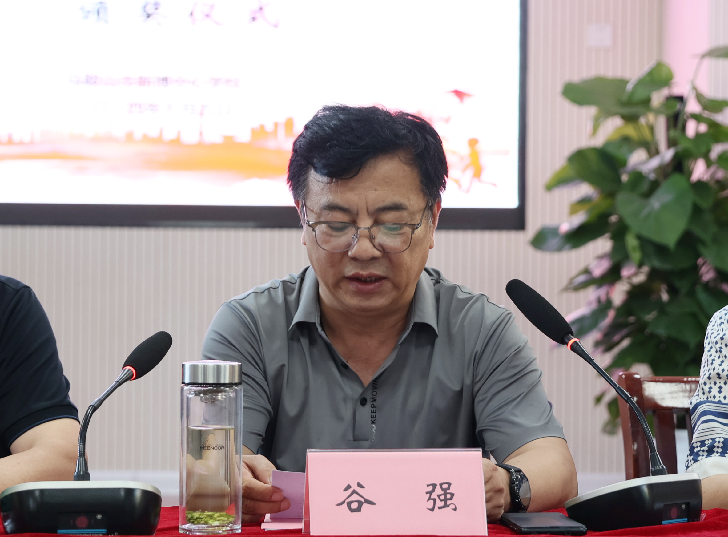 ? ? 儀(yi)式由博望區教育局(ju)(ju)黨委書記、局(ju)(ju)長(chang)戴靜(jing)主(zhu)持。新博中心(xin)學(xue)校師生及學(xue)生家長(chang)代表(biao)共80余人參加了頒發儀(yi)式。