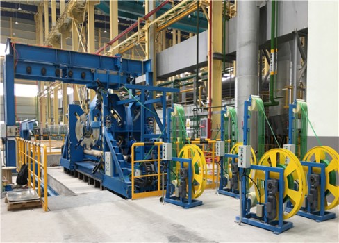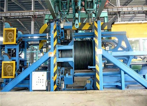 打包機安裝(zhuang)在輥道上的(de)固定位置,棒捆(kun)從輥道上通過的(de)同時也穿過打捆(kun)機的(de)閉合線道系統。